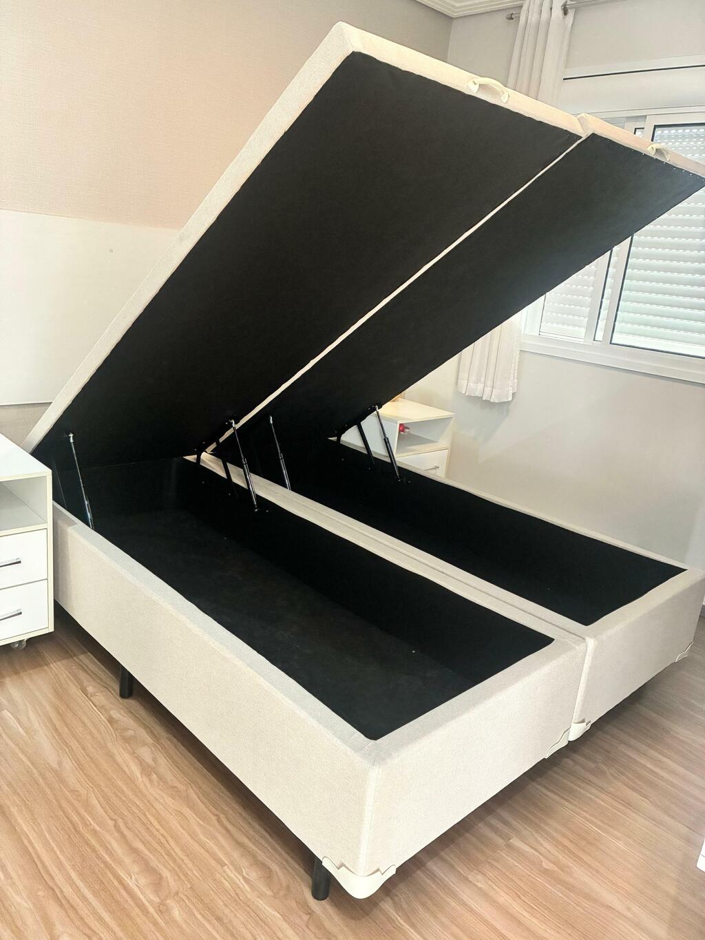 A Cama Box Baú Premium Blindada é Totalmente diferente dos baús tradicionais, Possui sua estrutura muito mais reforçada, tampo e fundo além de mais reforçados ainda possuem chapas de 4mm para maior durabilidade e suporte de peso, acompanha as laterais e frente totalmente BLINDADAS! As laterais da cama baú são feitas de um material leve e resistente, projetado para proporcionar suporte adicional à estrutura, ao mesmo tempo em que mantém um design elegante.